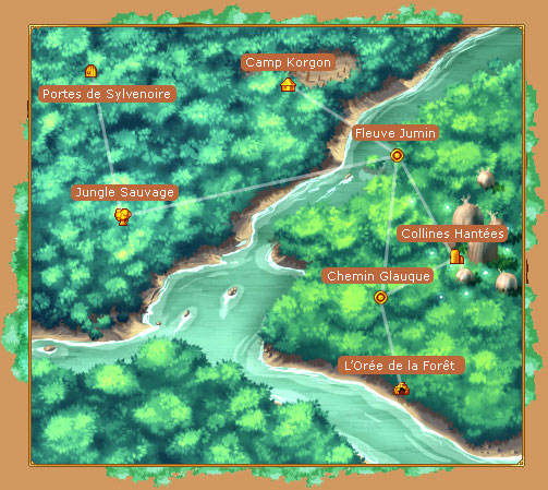 Accès : Contourner les Chutes à partir des Chutes Mutantes pour rejoindre l'Orée de la Forêt ou Voyagez vers le camp des Korgons à partir des Gorges Profondes pour rejoindre le Camp Korgon.